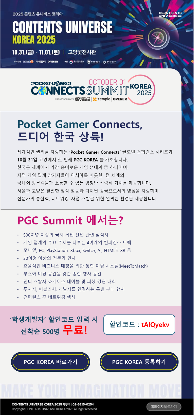 🎮 Pocket Gamer Connects Korea – Çѱ¹ »ó·ú! ±Û·Î¹ú °ÔÀÓ ÄÁÆÛ·±½º, Àü ¼¼°è °ÔÀÓ ¸®´õµéÀÌ ÇÑÀÚ¸®¿¡! 📢 »çÀüµî·Ï ¿ÀÇÂ